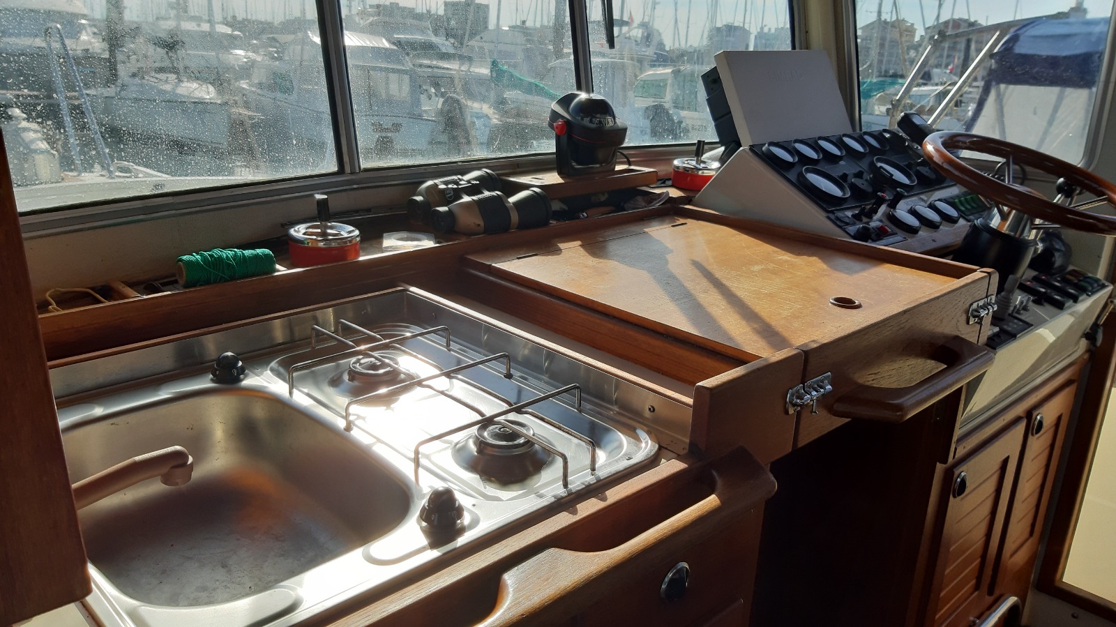 Notre bateau, un Targa 31 MK II motorisé par deux Volvo Penta KAD 44 (260 CV chacun), allie confort, performance et sécurité.